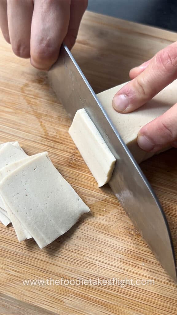- You can also use regular extra firm tofu and be sure to press the tofu before slicing into 1/4-inch thick pieces. You can opt to season the tofu with soy sauce to get more flavor in.