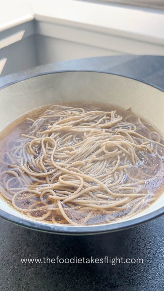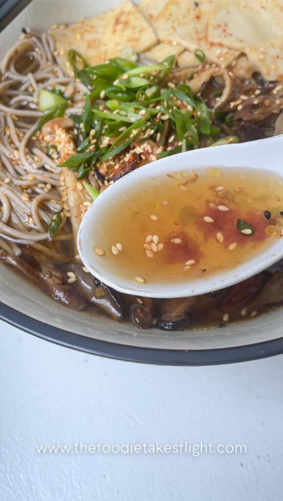 ASSEMBLING THE SOBA NOODLE SOUP WITH SOY GINGER MUSHROOMS
