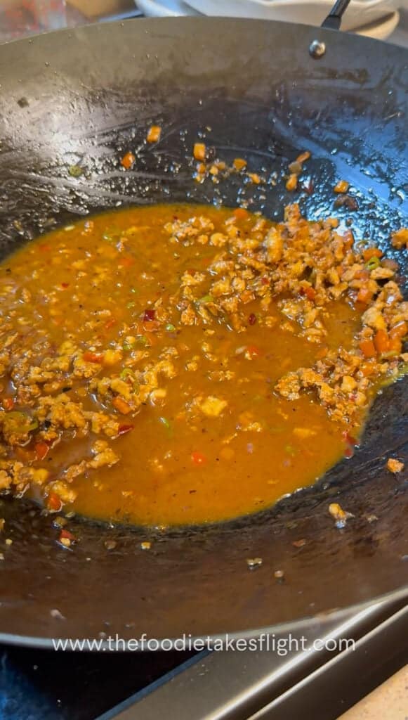 • Stir in the cornstarch slurry and cook until the sauce thickens and becomes glossy.