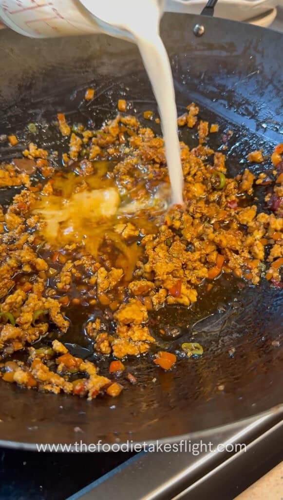 • In a separate bowl, whisk together the water and cornstarch to make the slurry.